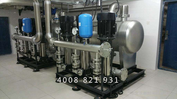 為了減小直接抽吸對市政供水的影響,一般應在設備入口管道上串接一個承壓貯水容器。主要起緩沖作用(動態補償作用)的水罐稱為緩沖罐;平時無動態緩沖作用僅在市政管無水壓時才起備用水源作用的水罐稱為水源罐。大容積的承壓水池也是水源罐的一種形式(一般采用鋼筋混凝土現場施工建造。