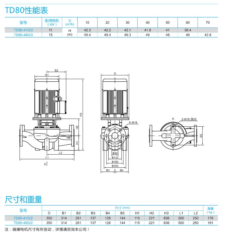 南方泵業TD管道循環泵(藍色電機)