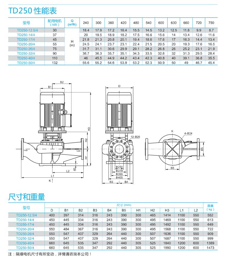 南方泵業TD單級立式管道循環泵,泵進出水口在泵底同一直線上,產品設計為頂部可拉出的拆裝形式,其可以在不影響管路系統的情況下對泵進行維修